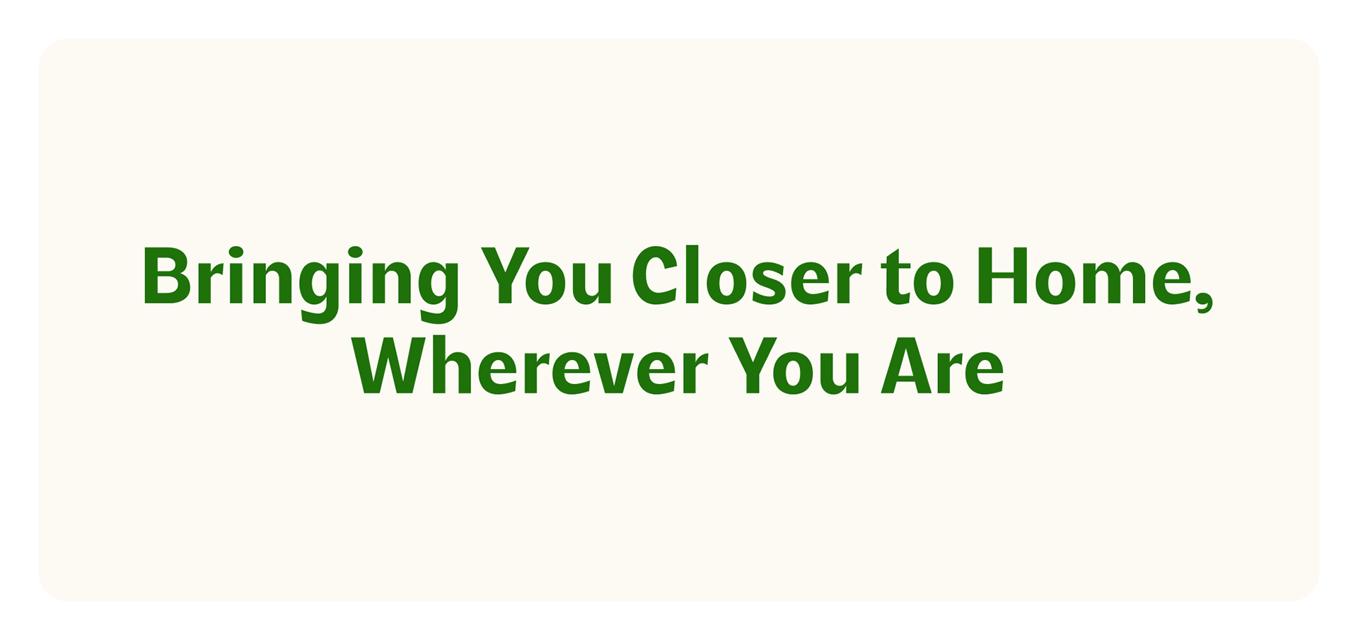 "ไม่ว่าจะไกลหรือใกล้, เราให้คำสัญญาว่าบ้านของคุณจะยังคงเป็นบ้านของคุณเสมอไป "ทำให้คุณรู้สึกใกล้บ้านอีกครั้ง" เป็นเป้าหมายที่แบรนด์ของเราต้องการ"
